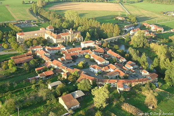 Rapidement, le bourg est doté d’une enceinte de briques mesurant environ 350 mètres de long. Le rempart est surmonté d’un chemin de ronde et de hourds en bois et défendu par deux tours-portes aux extrémités de la rue longeant l’Abbaye jusqu’au pont. Deux faubourgs – les bastides Darré (de l’ouest) et Davan (de l’est) – viendront compléter l’habitat.